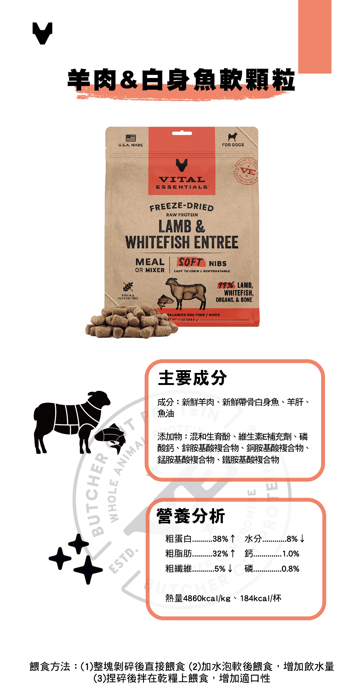 VE凍乾鮮肉犬用生食餐-羊肉&白身魚軟顆粒