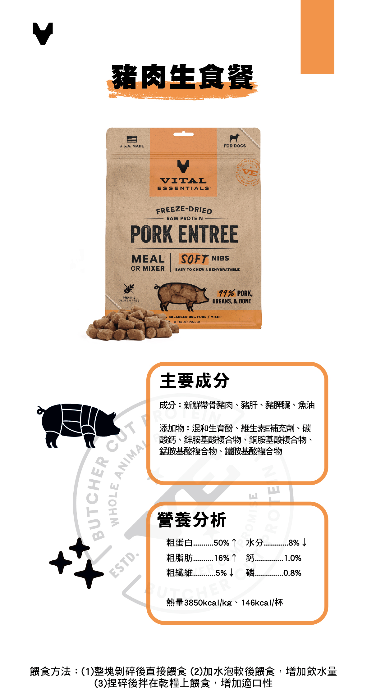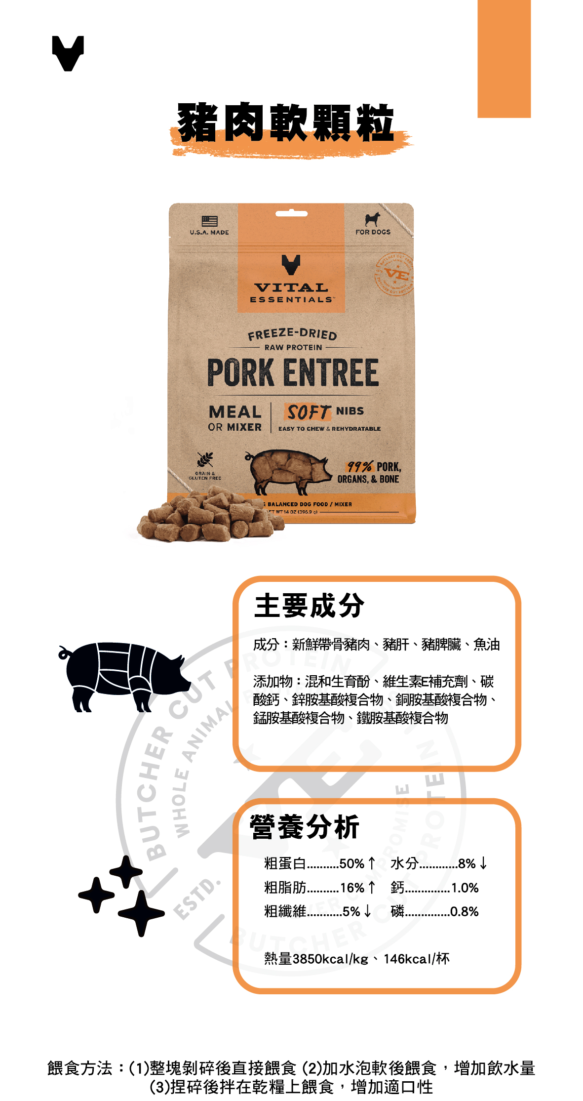 VE凍乾鮮肉犬用生食餐-豬肉軟顆粒