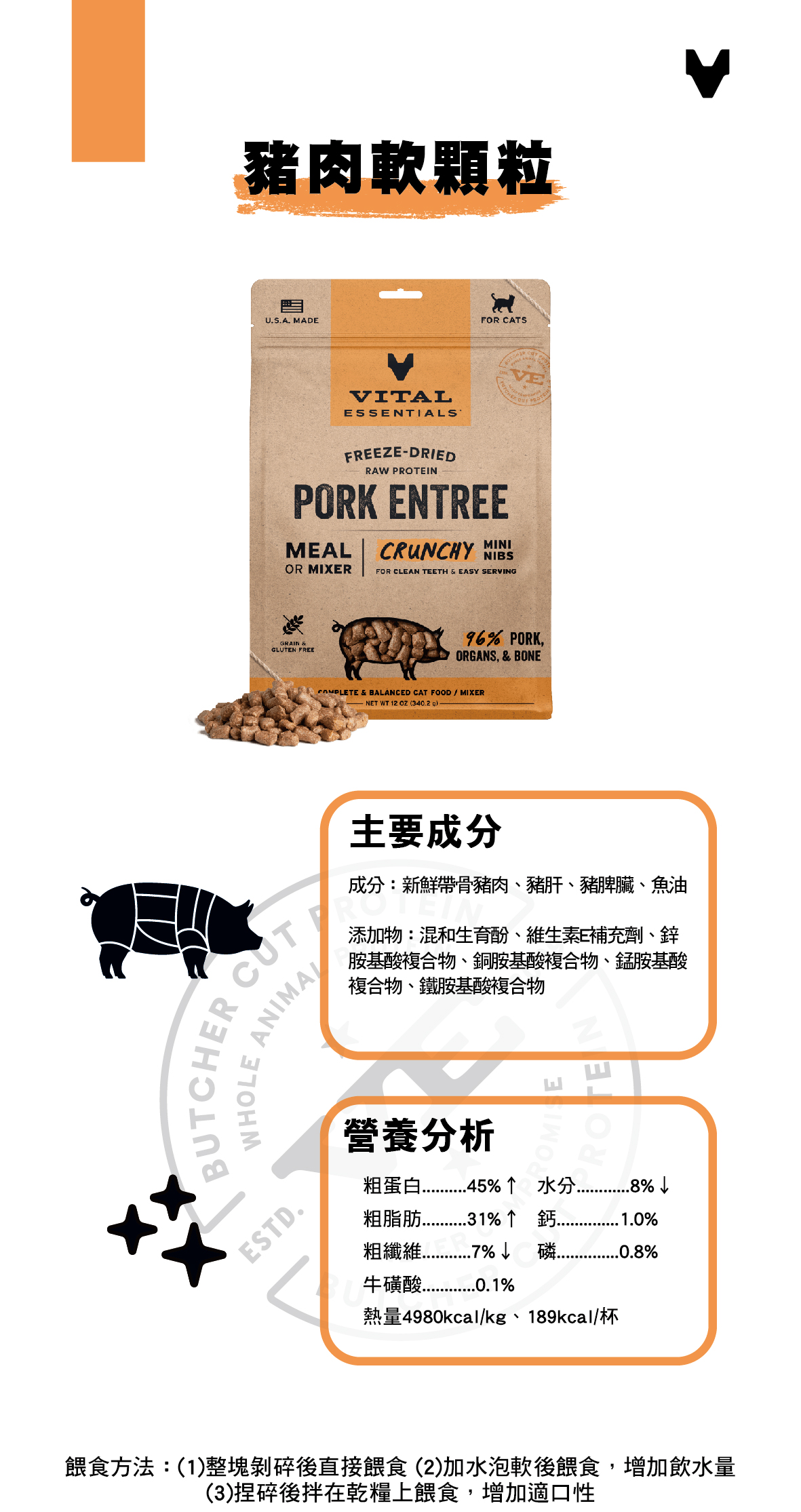 VE凍乾鮮肉貓用生食餐-豬肉軟顆粒