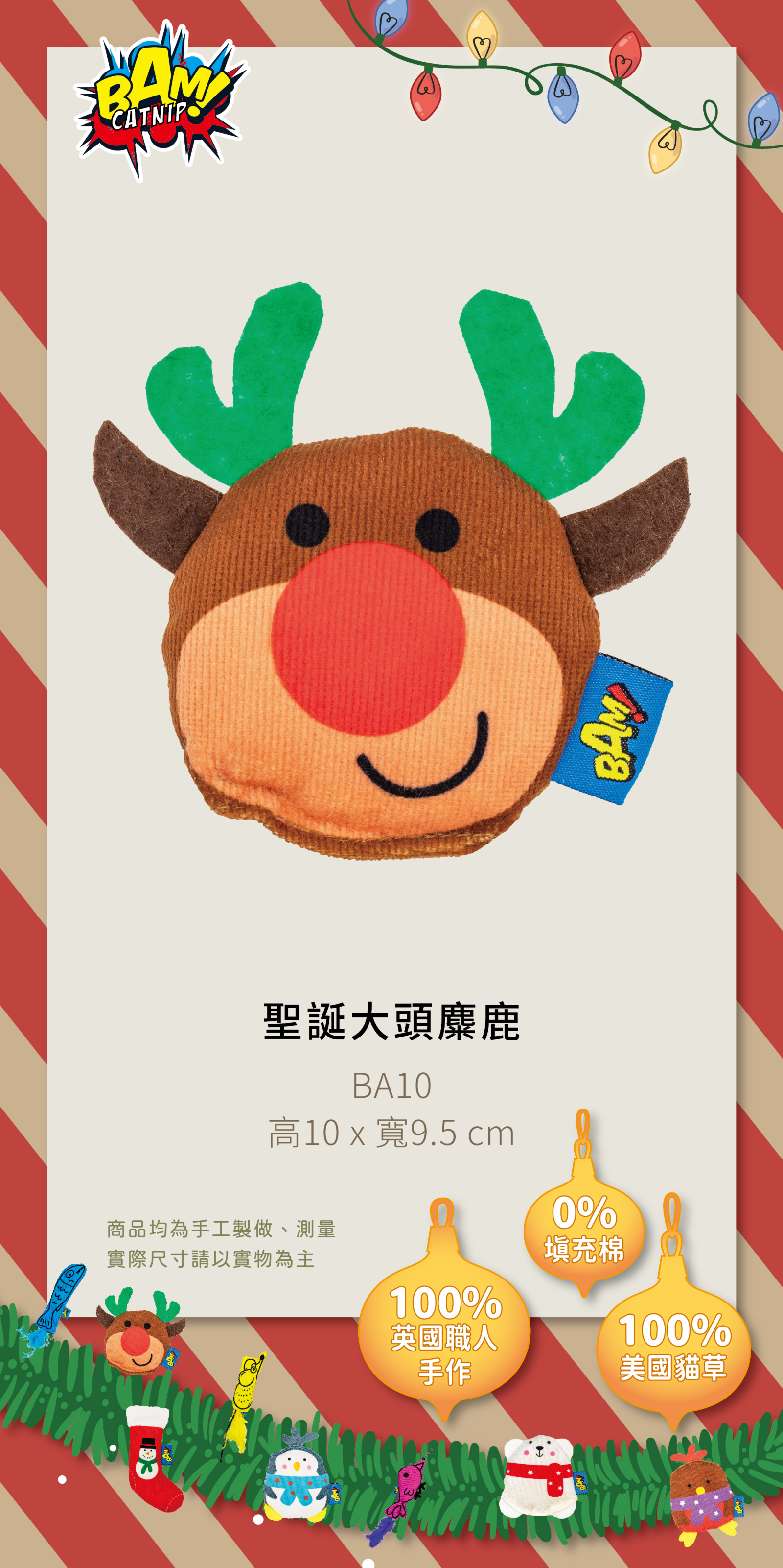 英國BAM! 特濃貓草玩具-聖誕大頭麋鹿