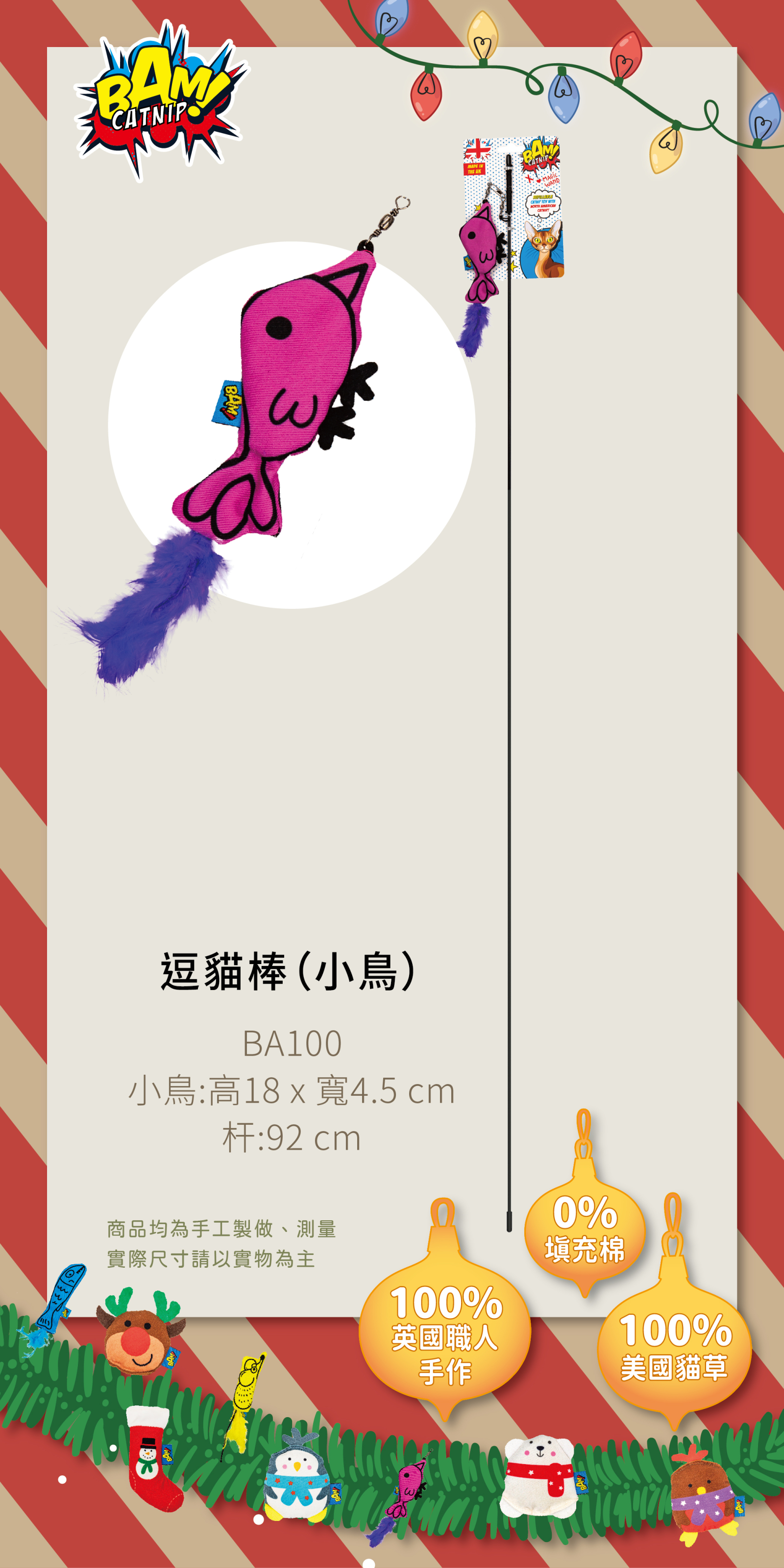 英國BAM! 特濃貓草玩具-逗貓棒(小鳥)