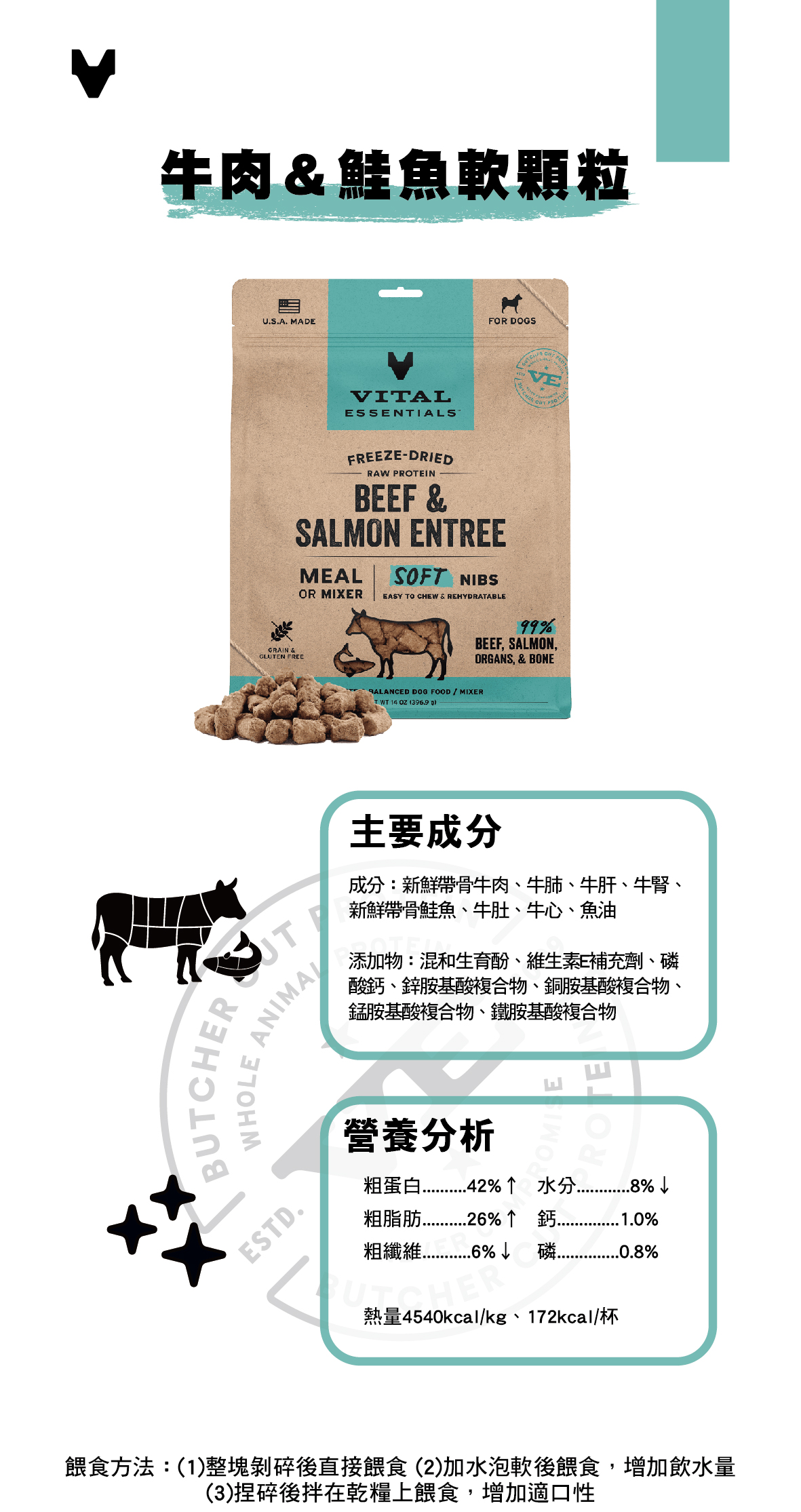 VE凍乾鮮肉犬用生食餐-牛肉&鮭魚軟顆粒
