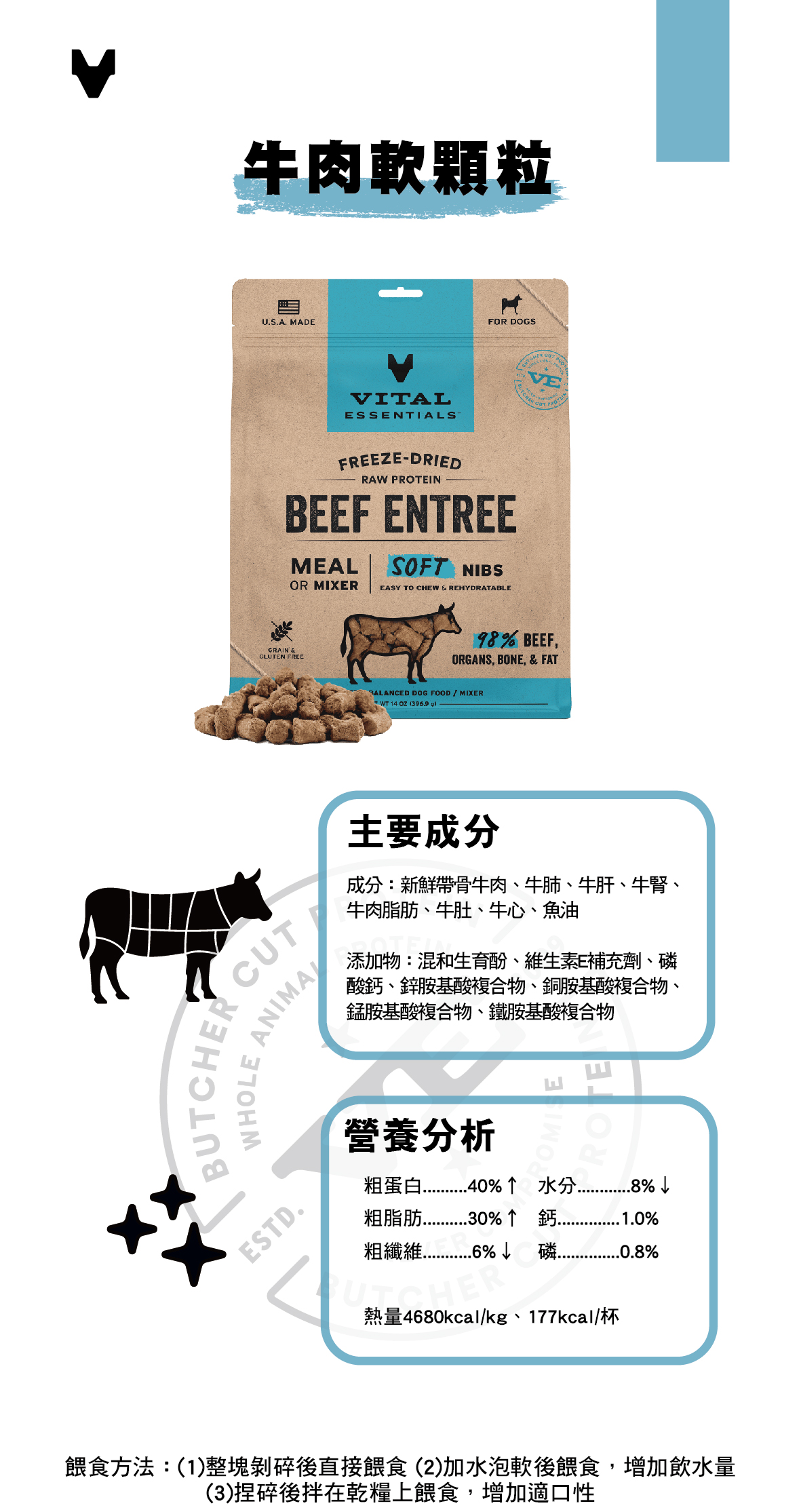 VE凍乾鮮肉犬用生食餐-牛肉軟顆粒
