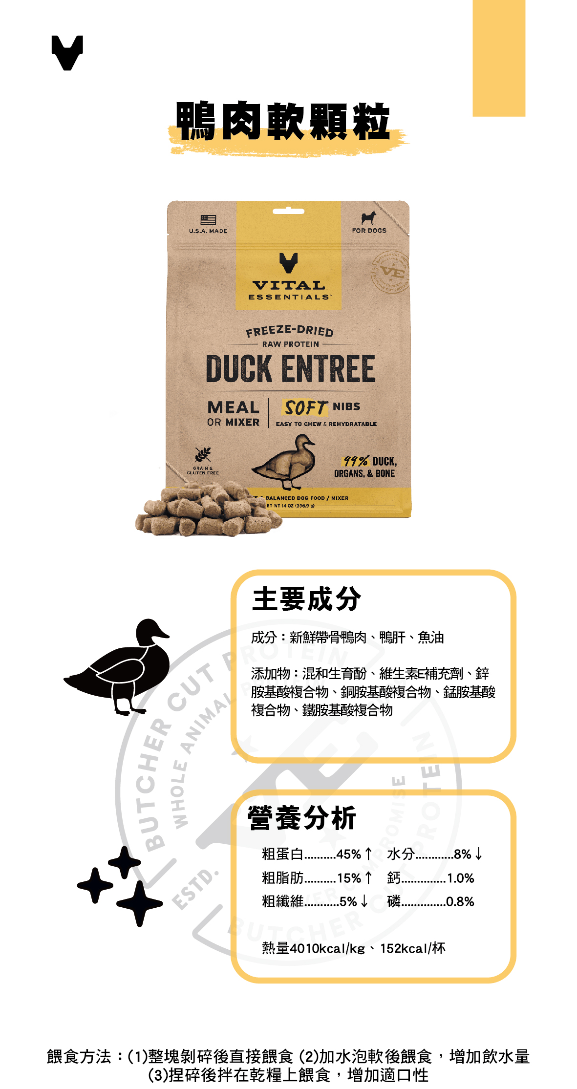 VE凍乾鮮肉犬用生食餐-鴨肉軟顆粒
