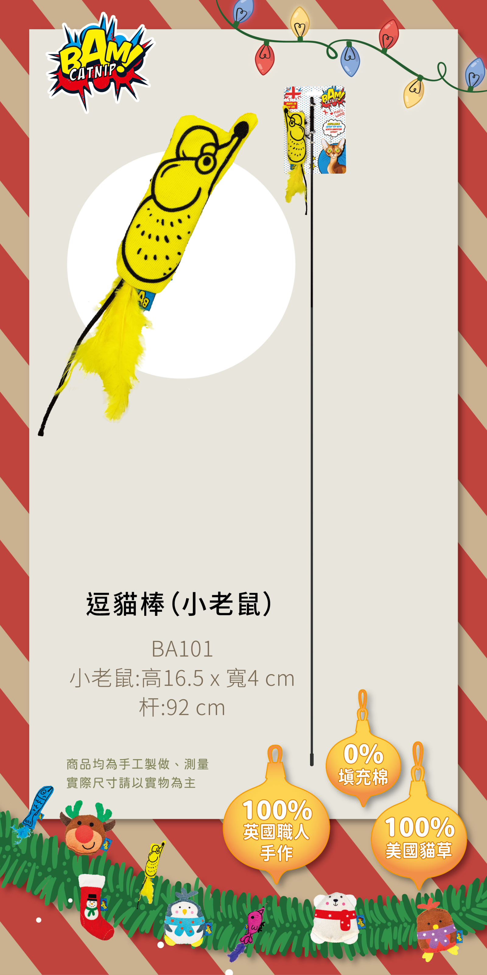 英國BAM! 特濃貓草玩具-逗貓棒(小老鼠)